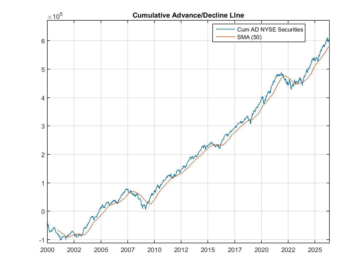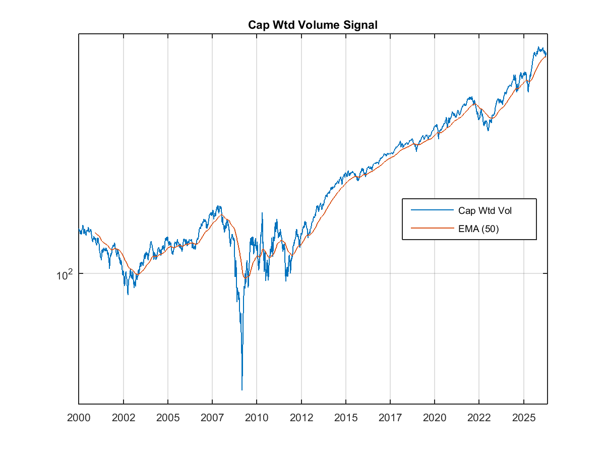 For the week, upside Capital Weighted Volume dominated downside by roughly a 3 to 4 ratio, but again on below average volume. Upside volume has been slightly above average in recent weeks, while downside volume has remained notably weak. This suggests the rally has been driven more by a lack of sellers than by an abundance of demand.