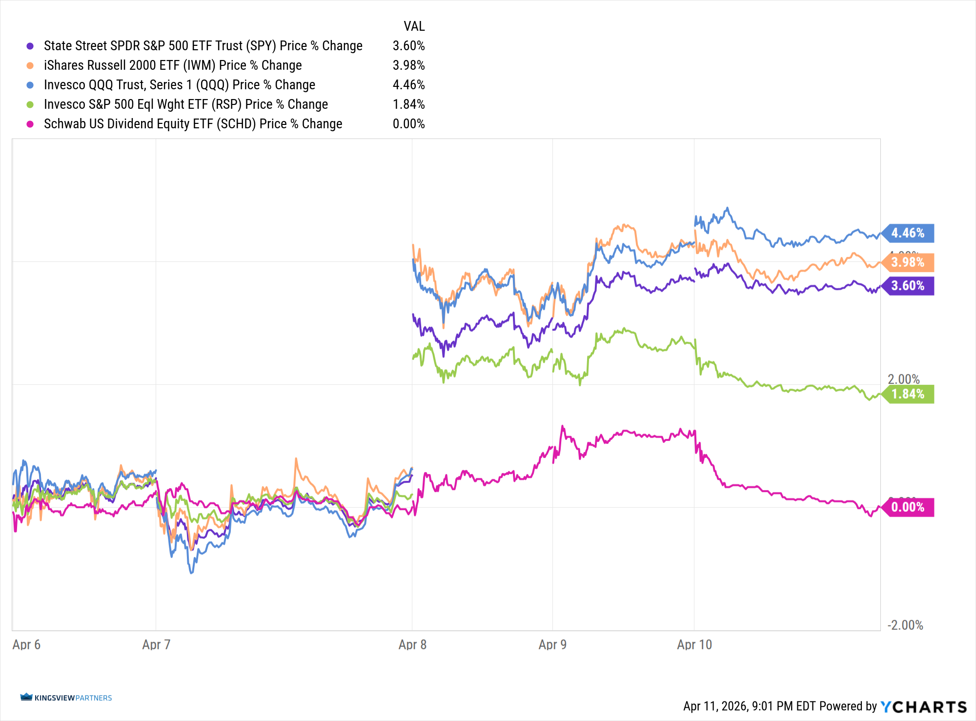 Updated: 4/13/2026. Historical references do not assume that any prior market behavior will be duplicated. Past performance does not indicate future results. This material has been prepared by Kingsview Wealth Management, LLC. It is not, and should not, be regarded as investment advice or as a recommendation regarding any particular security or course of action. Opinions expressed herein are current opinions as of the date appearing in this material only. All investments entail risks. There is no guarantee that investment strategies will achieve the desired results under all market conditions and each investor should evaluate their ability to invest for the long term. Investment advisory services offered through Kingsview Wealth Management, LLC (“KWM”), an SEC Registered Investment Adviser.