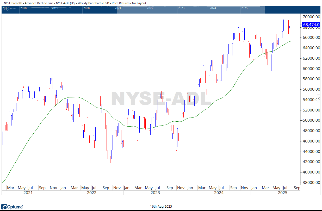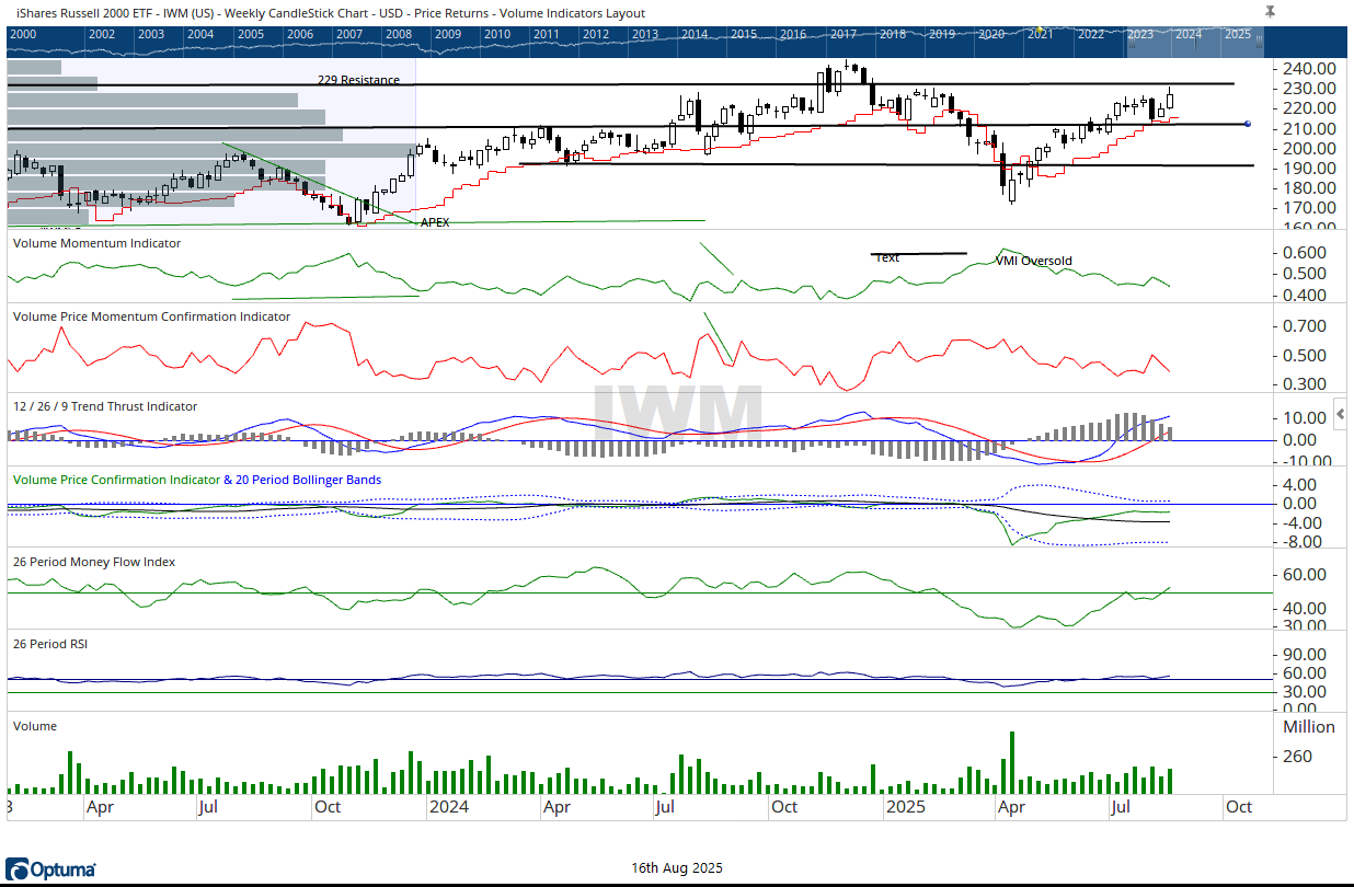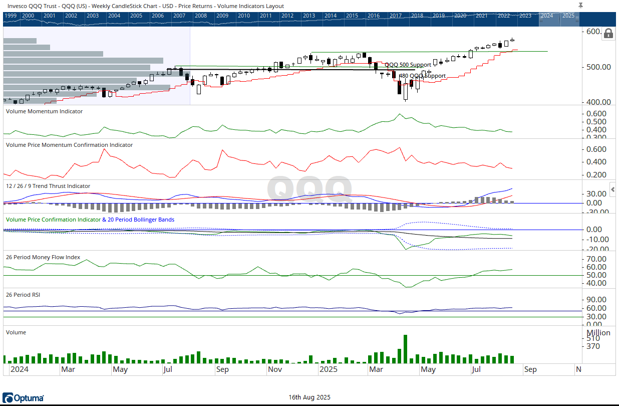 The generals (QQQ – Invesco QQQ Trust), though trailing their broader market piers, continued their march albeit at a slower pace than in prior weeks, adding just 0.44%. Yet despite their modest gain, they once again set both daily and weekly record highs, confirming their position as the vanguard of this campaign. The broader capital weighted S&P 500 Index likewise followed suit with new highs of its own.