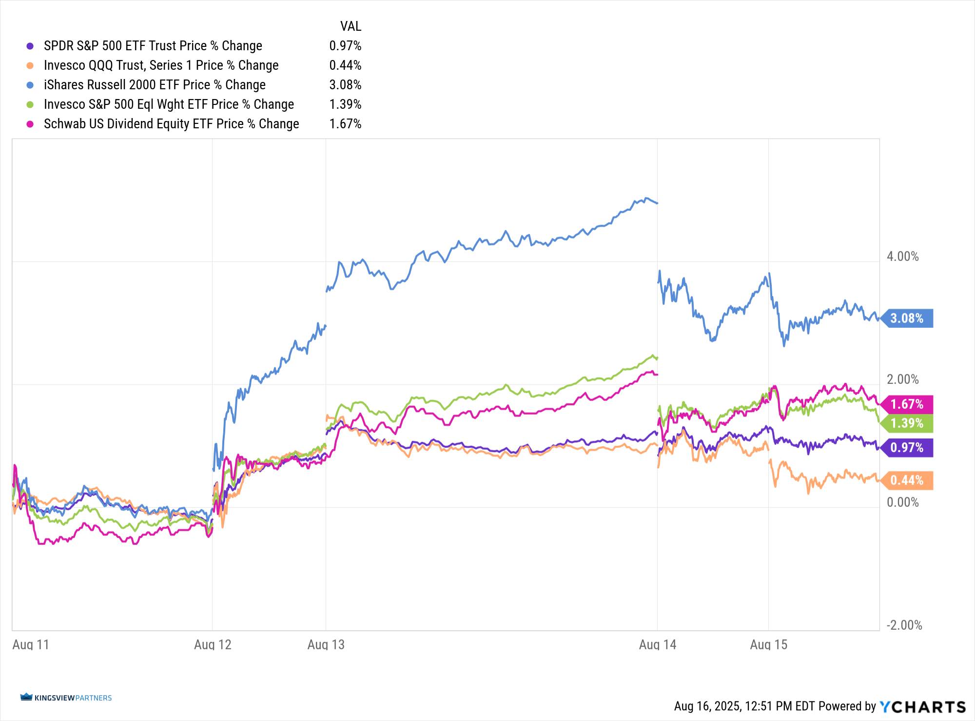 Updated: 8/18/2025. Historical references do not assume that any prior market behavior will be duplicated. Past performance does not indicate future results. This material has been prepared by Kingsview Wealth Management, LLC. It is not, and should not, be regarded as investment advice or as a recommendation regarding any particular security or course of action. Opinions expressed herein are current opinions as of the date appearing in this material only. All investments entail risks. There is no guarantee that investment strategies will achieve the desired results under all market conditions and each investor should evaluate their ability to invest for the long term. Investment advisory services offered through Kingsview Wealth Management, LLC (“KWM”), an SEC Registered Investment Adviser.